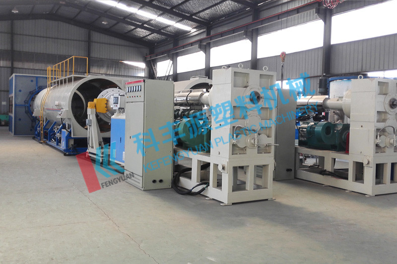 真空定徑法保溫管設(shè)備,是我公司消化吸收德國(guó)技術(shù)而研制開(kāi)發(fā)的新型保溫管設(shè)備。 真空定徑法保溫管設(shè)備集擠出、真空定徑、冷卻、牽引、切割、卸料于一體。具有自動(dòng)化程度高、產(chǎn)量大、性能穩(wěn)定、壽命長(zhǎng)、適用于再生料等特點(diǎn),特別是與內(nèi)壓法生產(chǎn)的管材相比,無(wú)論從環(huán)剛度、承壓力等各方面性能指標(biāo)遠(yuǎn)超1/3之多,目前是國(guó)際上先進(jìn)、流行的防腐保溫大管生產(chǎn)線系列產(chǎn)品。