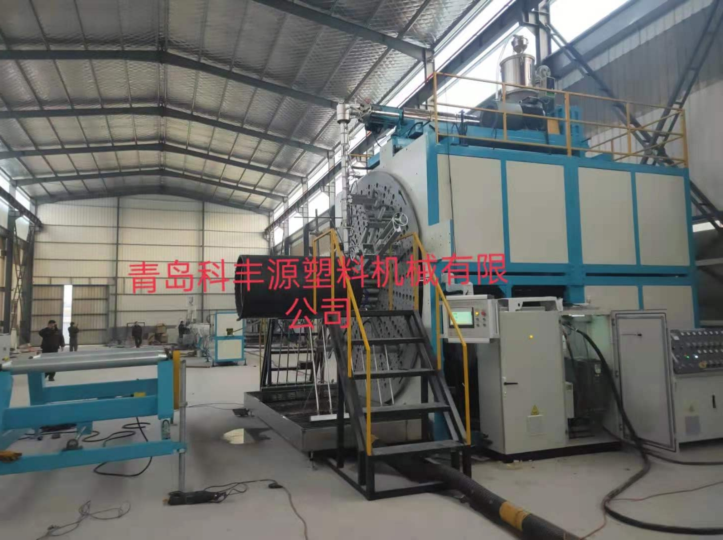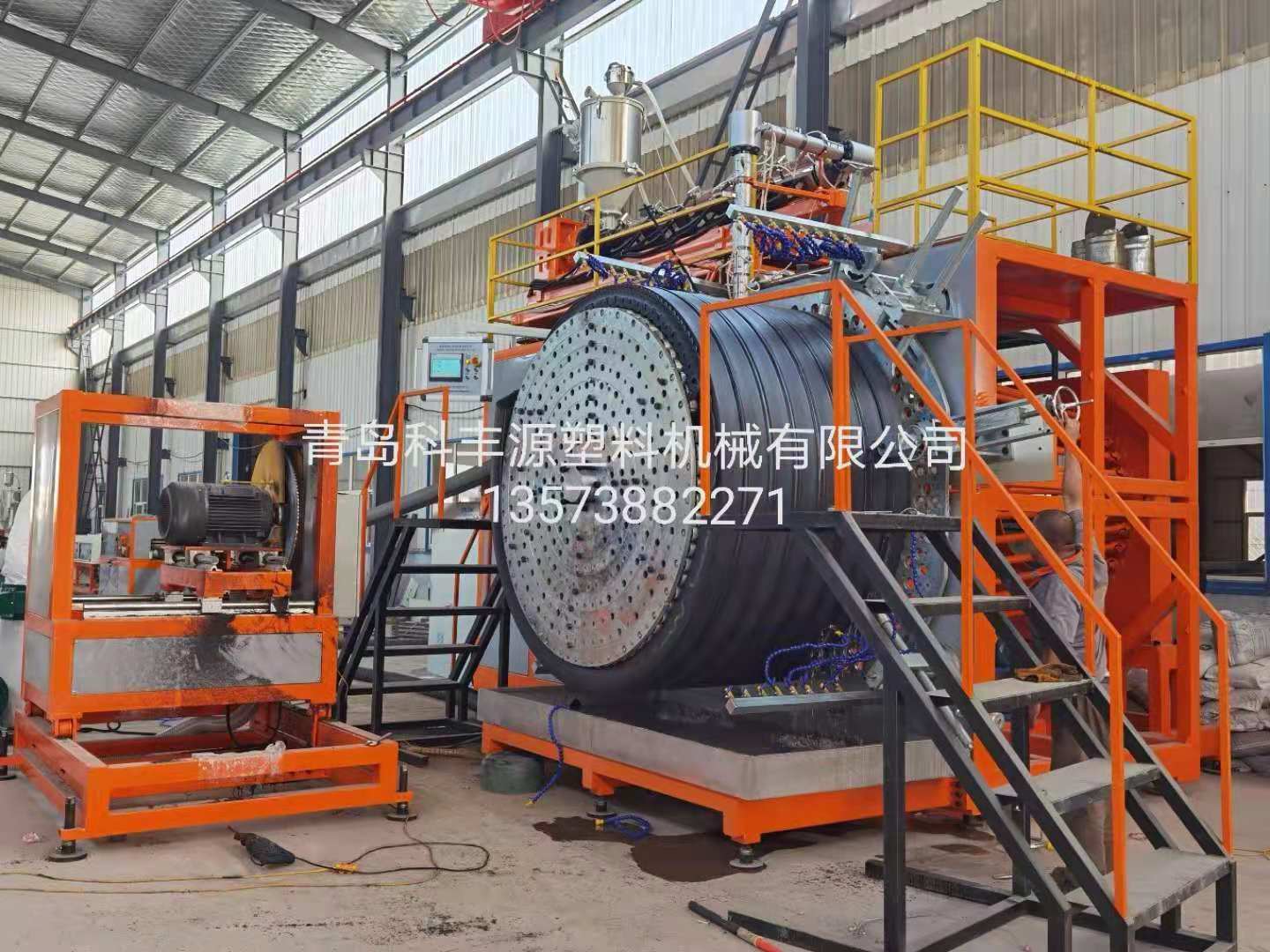 生產(chǎn)線控制系統(tǒng)→高效單螺桿擠出機(二臺共擠)→ 擠出機頭模具 →纏繞管成型機→真空冷卻噴淋箱子 →牽引機 →切割機 →存料翻轉(zhuǎn)臺