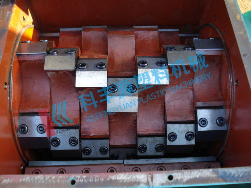 塑料破碎機(jī)通過電動(dòng)機(jī)帶動(dòng)動(dòng)刀刀架做高速旋轉(zhuǎn),在動(dòng)刀高速轉(zhuǎn)動(dòng)的過程中與定刀形成相對(duì)運(yùn)動(dòng)的剪切趨勢(shì),利用動(dòng)刀與定刀之間形成的剪切從而對(duì)大塊塑料進(jìn)行破碎、粉碎,破碎后形成10-20mm大小的塑料片,通過篩網(wǎng)對(duì)塑料顆粒大小進(jìn)行過濾輸出。